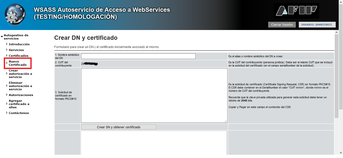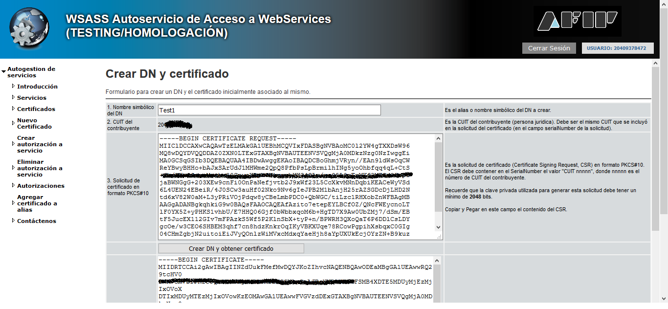 > * `[CUIT]` con el CUIT de la empresa para quien es el certificado. De nuevo, en testing recomendamos usar el CUIT de uno para no generar confusiones.